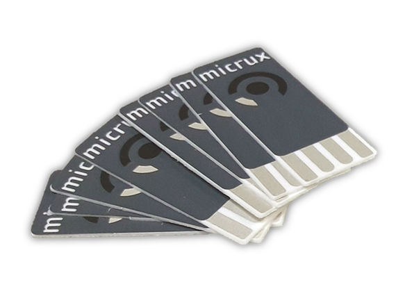 传感器每 50 个装一盒。您可以使用 Micrux 4 电极适配器连接 Micrux 丝网印刷电极。