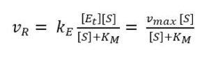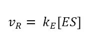 While the reaction from the complex to the product can be treated as irreversible, the kinetics of the ES formation is fast compared to product formation and is reversible. As a result, the velocity of the reaction vR is proportional to the concentration of the enzyme-substrate complex according to