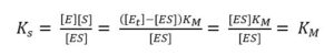 Equation 3.7 shows this conclusion. Using equation 3.6 with 3.2 leads to a new expression for [ES] (equation 3.8).