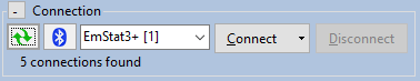 Make sure the USB cable is connected and EmStat3 shows in the list next to the ‘Connect’ button.
