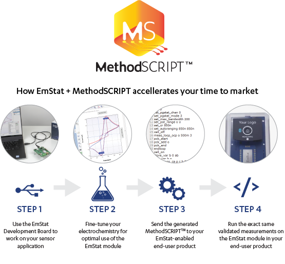 The MethodSCRIPT™ scripting language is designed to integrate our instruments or modules for OEM effortlessly in your hardware setup or product.